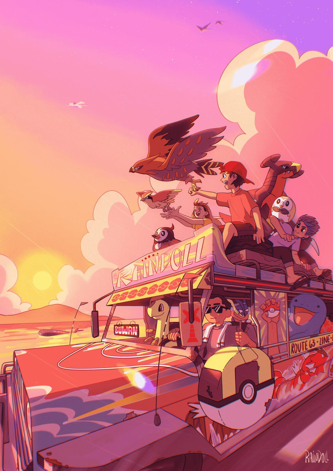 Character-Centered Illustration with a fully rendered art style (simple backgrounds such as patterns and solid colors are included)